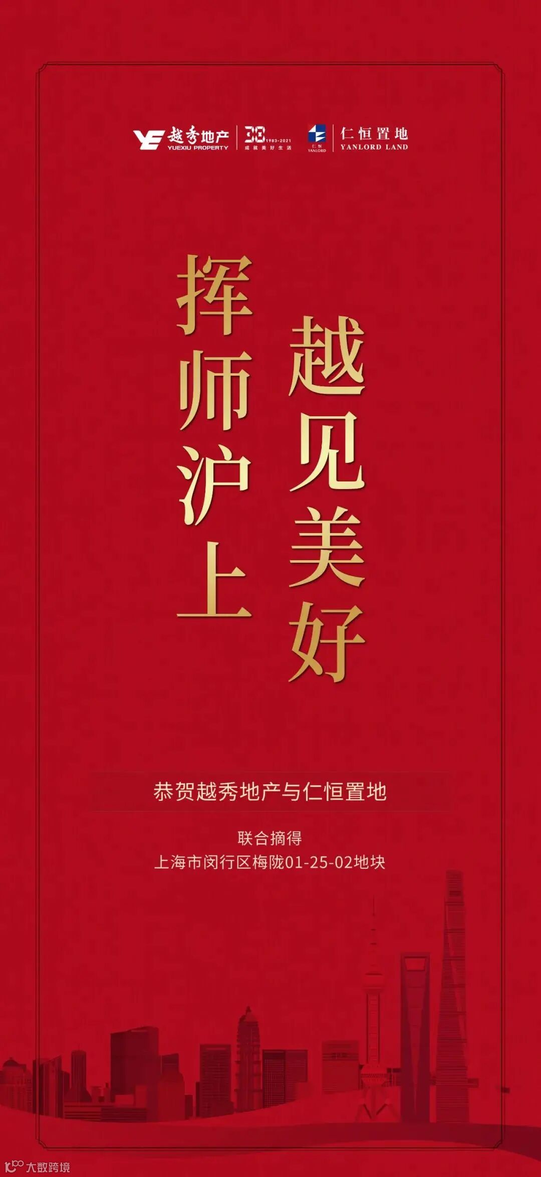 10月13日,越秀地产联手仁恒置地,成功摘得上海市闵行区梅陇01-25-02地块,首进上海。至此,越秀地产已成功布局北、上、广、深四大超一线城市。