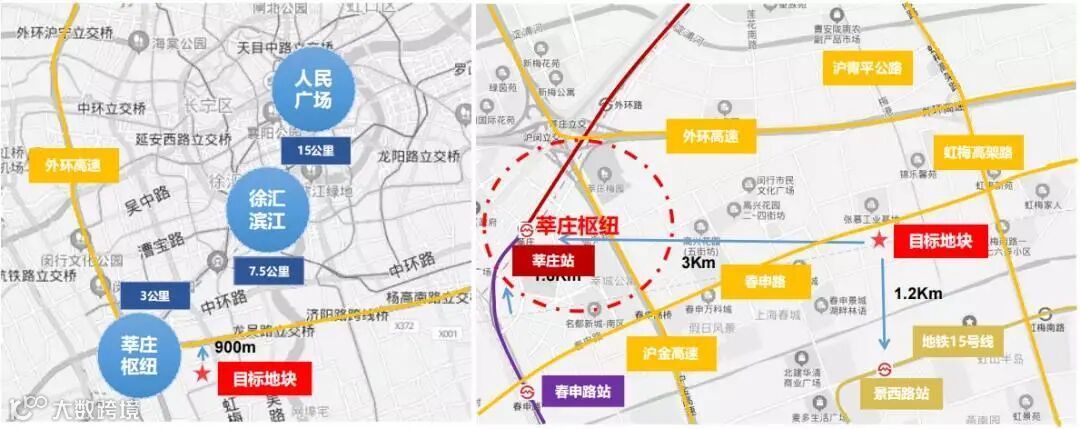地块西侧即为春申成熟居住区,周边有华清商业广场、麦多生活广场,距离莘庄商圈约2.5公里,直线距离人民广场15公里,商业氛围整体较好。地块西侧、北侧500米即为闵行区实验小学与春申景城幼儿园,周边环绕华东医院、大华医院、闵行区中心医院,教育、医疗区位优势同样显著。