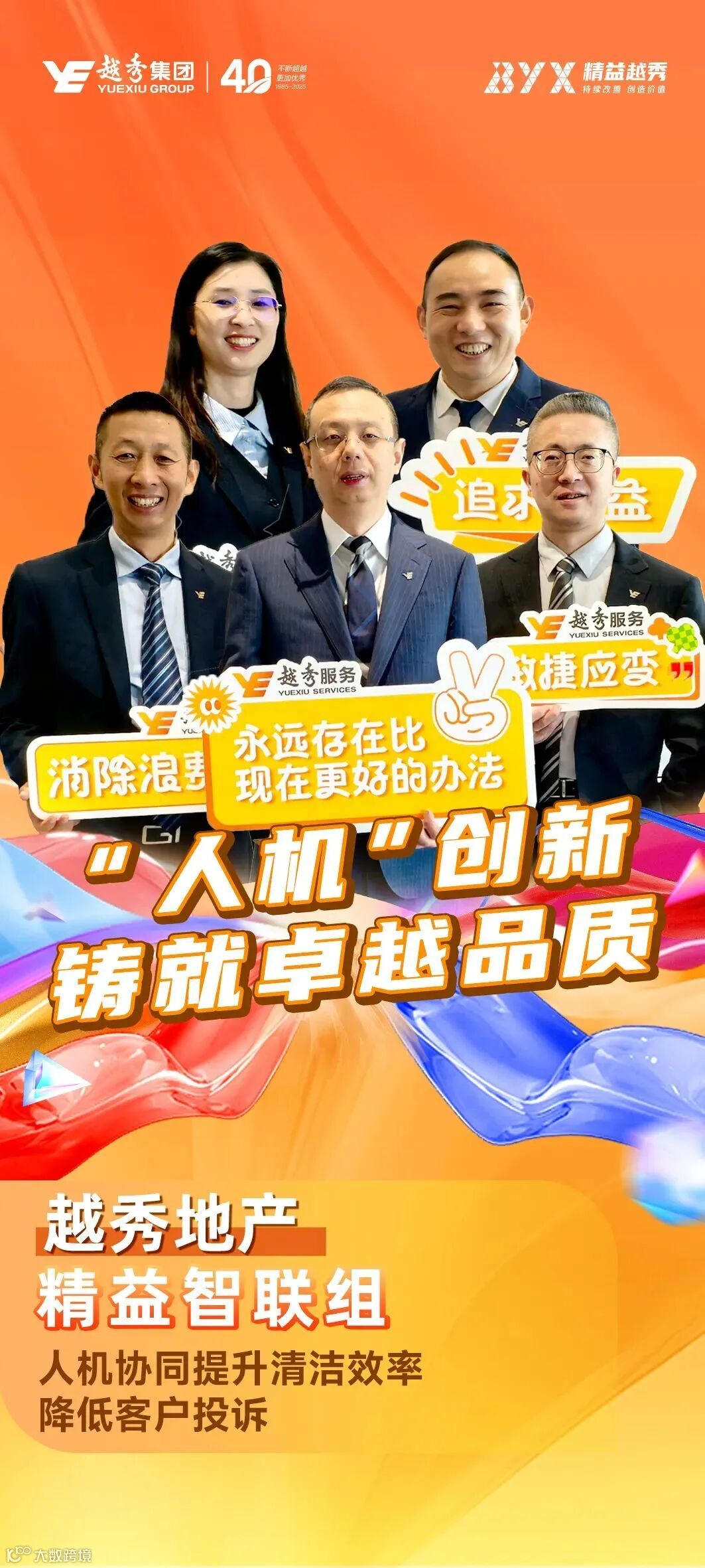 越秀地产住宅小区客户对物业卫生服务的投诉占比高,高频问题主要集中在公共区域清洁卫生不到位、保洁服务不及时等方面。同时,传统依赖人工体力劳动的作业模式导致运营成本居高不下,难以为继。在物业服务刚性成本持续升高及客户对服务品质精细化要求不断提高的双重压力下,为回归服务本质、提升品质,越秀服务聚焦"成本与品质平衡",积极探索解决方案。
