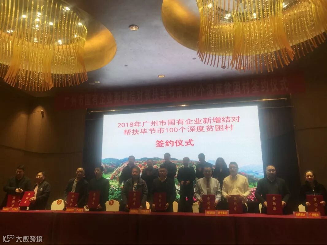 近日,广州市国资委率30家广州国有企业前往贵州省毕节市,与织金县、纳雍县、赫章县的100个深度贫困村集中签订结对帮扶协议。