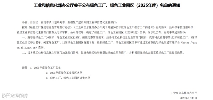 2026年3月18日,国家工业和信息化部办公厅正式公布“绿色工厂、绿色工业园区(2025年度)”名单,广州造纸股份有限公司(以下简称“广纸”)入选“国家级绿色工厂”。这是企业在绿色制造体系建设方面取得的一项国家级认定,标志着广纸在获得“广东省造纸行业能效领跑者”等荣誉后,在绿色制造体系构建、能效水平提升、资源循环利用及清洁生产等方面达到国家先进行列。