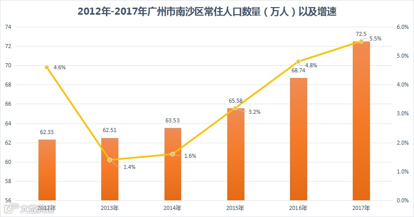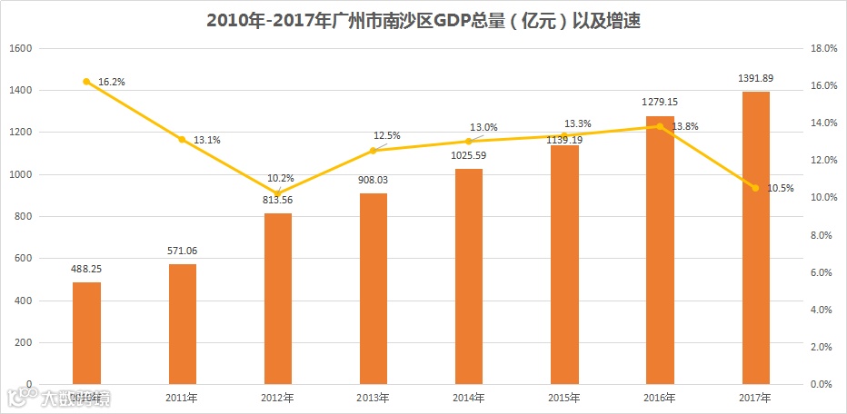 政策加持,区位优势,南沙的发展一路绝尘,GDP增量常年两位数增长,人口不断流入,产业加快集聚。