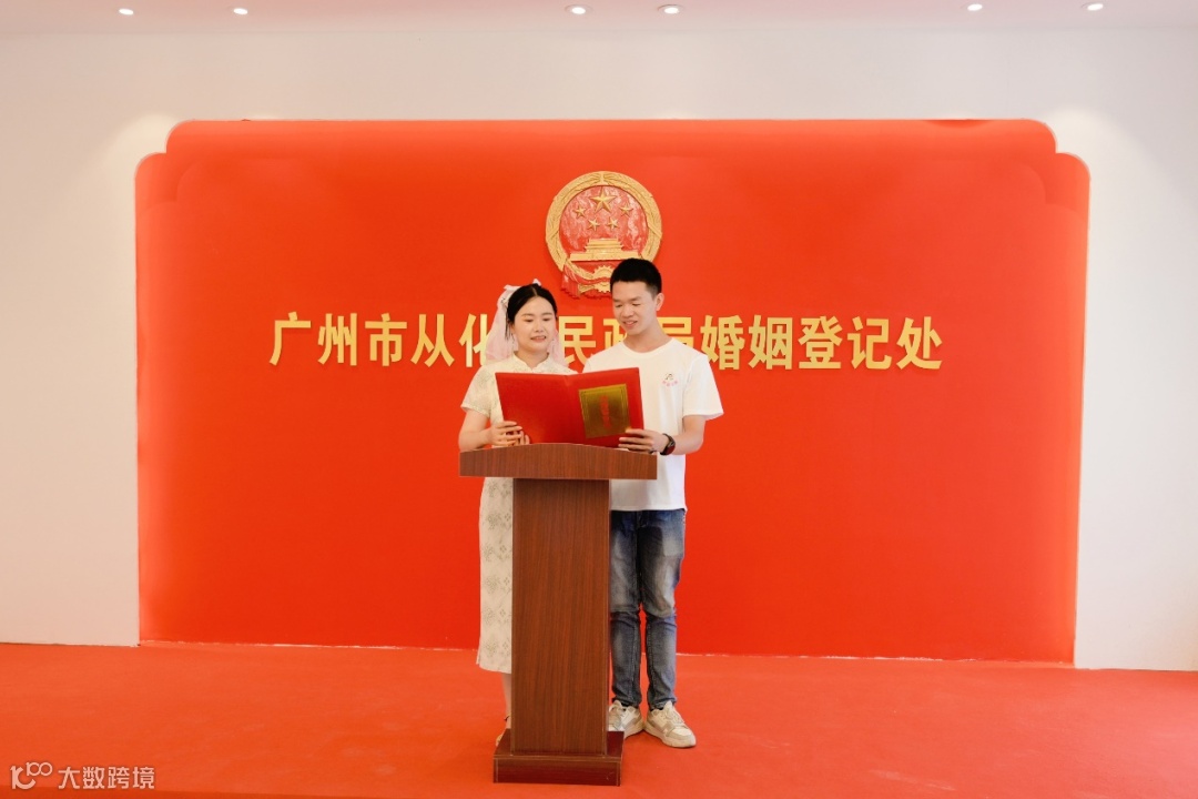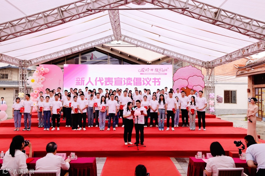仪式上,新人们集体宣读结婚誓词,互相交换戒指,由嘉宾为新人们集体颁发婚书并送上新婚祝福。婚礼现场有一对“特殊”的恋人,他们一个是在边疆守护祖国的新疆武警战士,一个则是在从化区鳌头镇默默奉献、全心全意为人民服务的基层干部,他们也在仪式上作为新人代表宣读倡议书。“参加集体婚礼既是积极响应‘移风易俗、婚事新办’的婚俗新主张,也能够和大家一起见证人生最重要的幸福时刻,是非常有价值的。”余文武夫妇向记者分享此刻的心情。