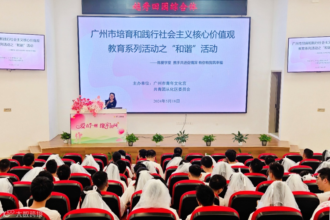 5月18日,在共青团广东省委员会、广州地区绿化委员会指导下,共青团广州市委员会、广州市民政局、广州市林业和园林局和越秀集团联合主办的“爱在广州·缘定田园”广州青年集体婚礼暨从化首期幸福同心林启动仪式,在越秀风行国家级田园综合体天天惦记·结婚小镇浪漫开幕。来自不同行业的42对新人携手迈入婚姻的殿堂,以一场不落俗套的田园集体婚礼共同度过特殊而有意义的甜美时光。