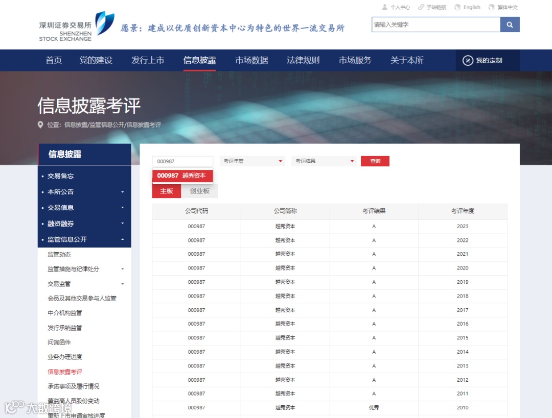 喜讯 | 越秀资本连续14年获得深交所信息披露考评A级