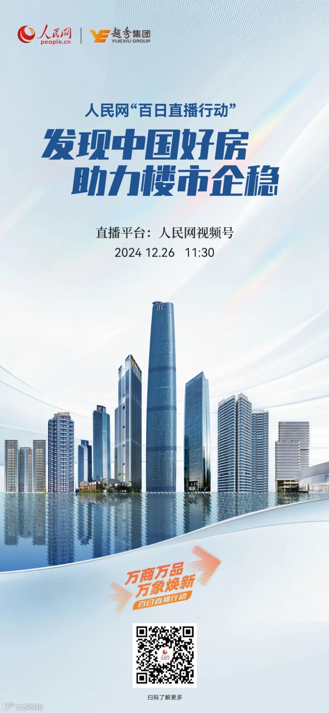 12月26日11:30,越秀集团将携手人民网,以“发现中国好房、助力楼市企稳”为主题,共同探讨新形势下的中国地产行业。