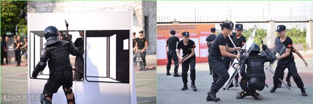 活动在简短的进场仪式后,立即开始精彩的防暴操表演赛,地产一队、二队、交通队、广纸队、发展队五支队伍分别接受集团领导的检阅,他们动作娴熟、训练有素、气势十足,充满战斗力和震慑力,充分展示了企业安全保卫队伍的威武形象。交通等代表队还贴近实战,现场演练防盗抢、制服歹徒。