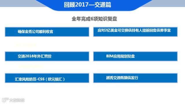 2017年,越秀交通广泛挖掘、充分提炼各业务条线项目复盘价值点,完成6项知识复盘。
