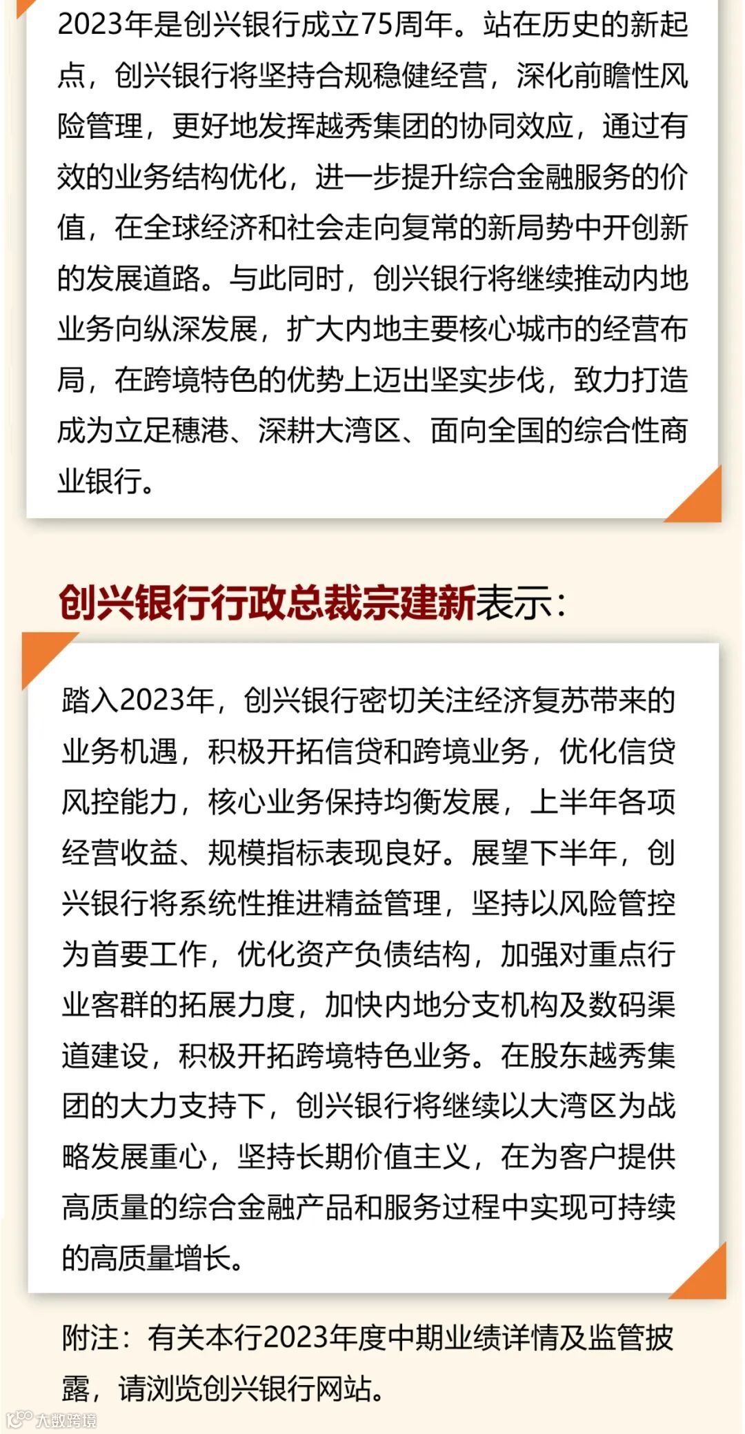 创兴银行2023年度中期业绩报告