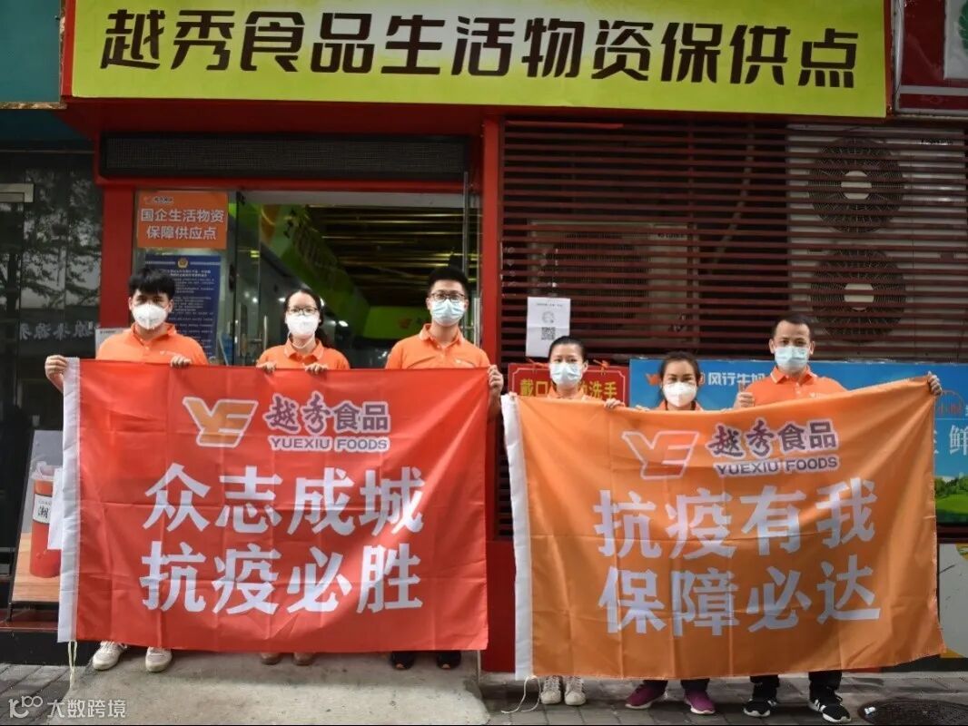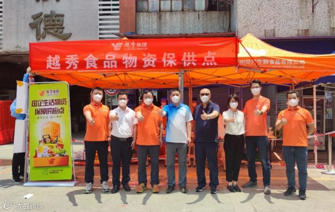 在管控区内,越秀食品在白云区棠景街和同德街设立线上线下多个保供点,保障居民生活物资供应,组织突击队给负责的片区居民输送生活必需品,风行生鲜槎龙集配中心24小时值班,做到物资随来随处理,高效有序将群众生活所需的肉、蛋、蔬菜等物资按小份备好,风行乳业迅速成立营销分队调集产品输送管控区,全面保障管控区群众的日常所需。