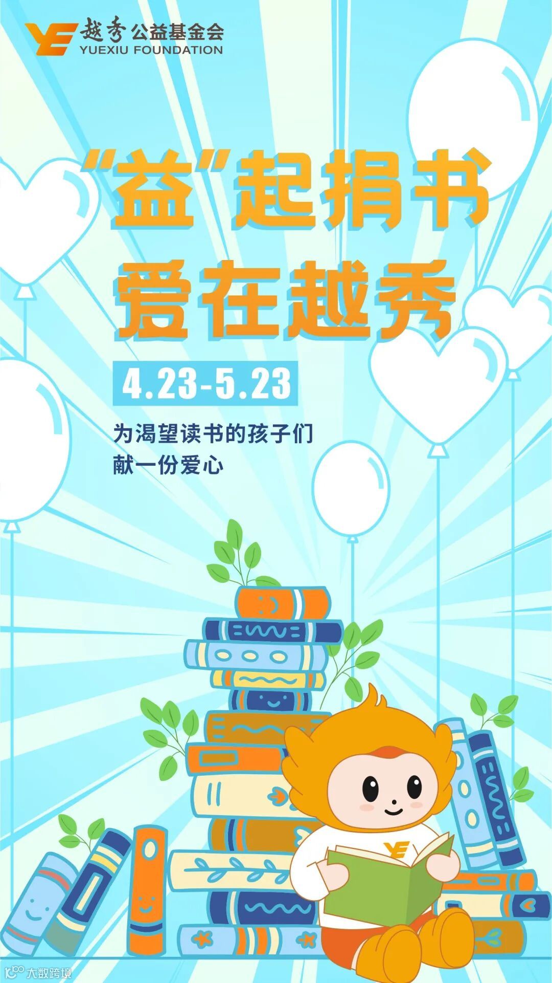 越秀公益基金会携手风行乳业、辉山乳业、越秀农牧、G+咖啡厅共同发起“‘益’起捐书,爱在越秀”公益行动,邀请您为渴望读书的孩子们献一份爱心,让偏远地区的孩子们有机会多读书、读好书。欢迎广大爱心人士踊跃参与!