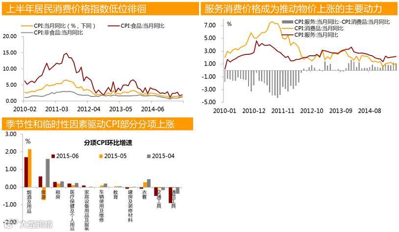 2015年上半年,CPI累计同比增长1.3%,为2009年以来同期新低,通缩风险并未完全消除。