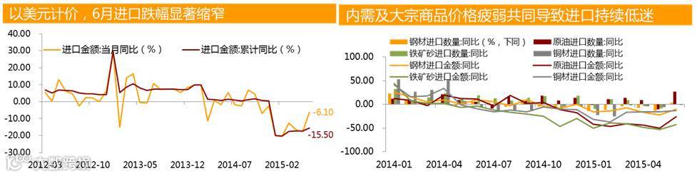 前5个月平均进口降幅均在15%以上,国内基本面改善有限,且6月进口数据基数比5月高,因此6月进口数据的好转或存在“水分”。资本市场动荡导致热钱借道贸易融资渠道出逃,可能扭曲了进口数据的真实性。