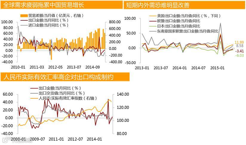 下半年出口形势依然不容乐观,虽然发达国家经济增速有望加快,但复苏力度并不强劲,而人民币有效汇率相对较高将继续拖累出口增长,预计出口仍将维持低速增长格局。