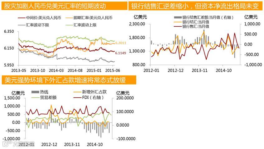 展望三季度,在经常项目延续顺差和当局推动人民币加入SDR的大环境下,人民币兑美元汇率仍将总体保持稳定,不会大幅贬值或升值。但经济基本面偏弱、美元强势以及跨境资本净流出等因素仍将加剧人民币兑美元贬值的压力,远期汇率或维持升水状态。