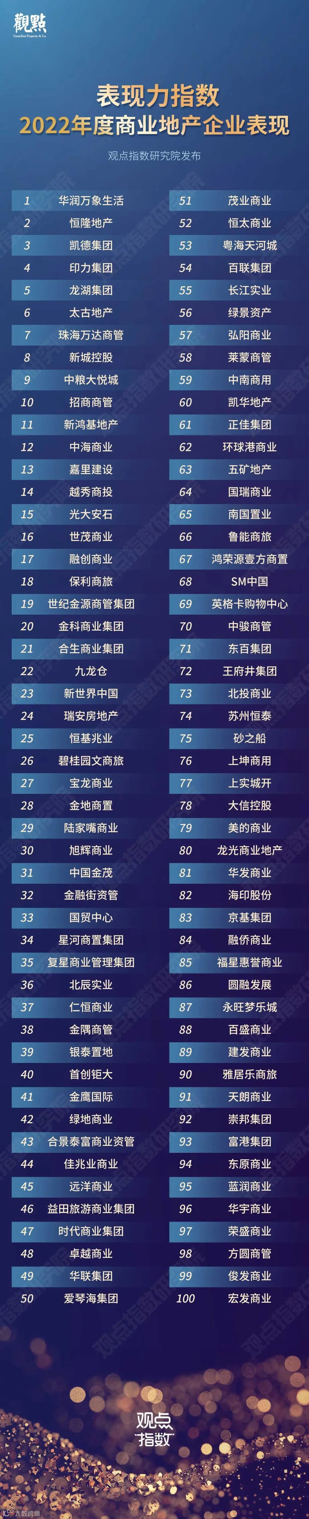 11月2日,2022观点商业年会在上海召开,大会以“回归、进化与创新”为主题,邀请众多行业大咖们齐聚一堂,共同探讨在革新与模式转变中开启新的商业未来。现场,观点指数重磅发布“表现力指数·2022年度商业地产表现”研究成果。
