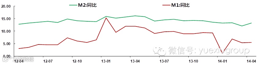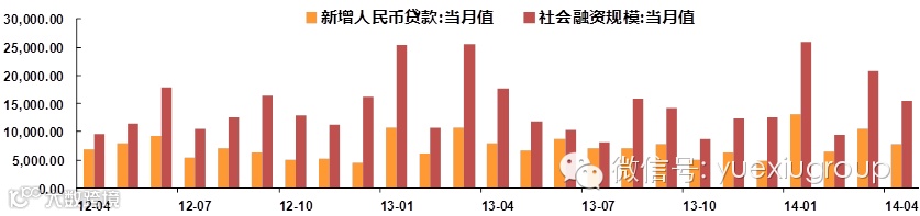 4月,M2同比增长13.2%,比上月末高1.1个百分点;社会融资总量为1.55万亿元,比去年同期少2091亿元;人民币信贷新增7747亿元,同比少增176亿元。M2增速反弹主要由于企业债券融资大幅度提高;社融规模扩张幅度减小,显示金融机构对实体经济支持力度仍然较弱