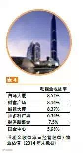上述6处物业通过越秀房托的精细管理,2014年,实现毛租金收益率如如表4。