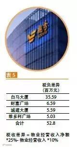 据《地产》记者估算,如果不考虑四处物业的折旧和财务利息等费用,在2014年,白马大厦、财富广场、城建大厦和维多利广场按收入的10%缴纳预提所得税,比按利润的25%缴纳所得税,税收负担差异如表5。