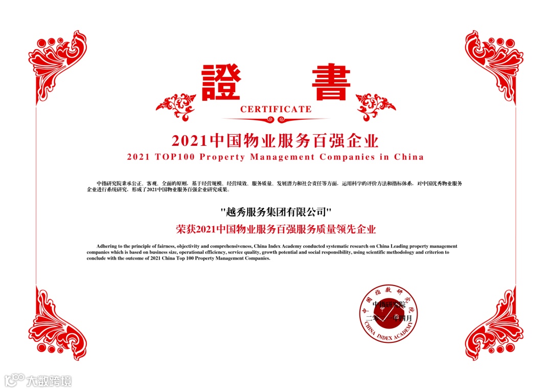 喜报 | 越秀服务荣登“2021中国物业服务百强企业”榜单TOP16