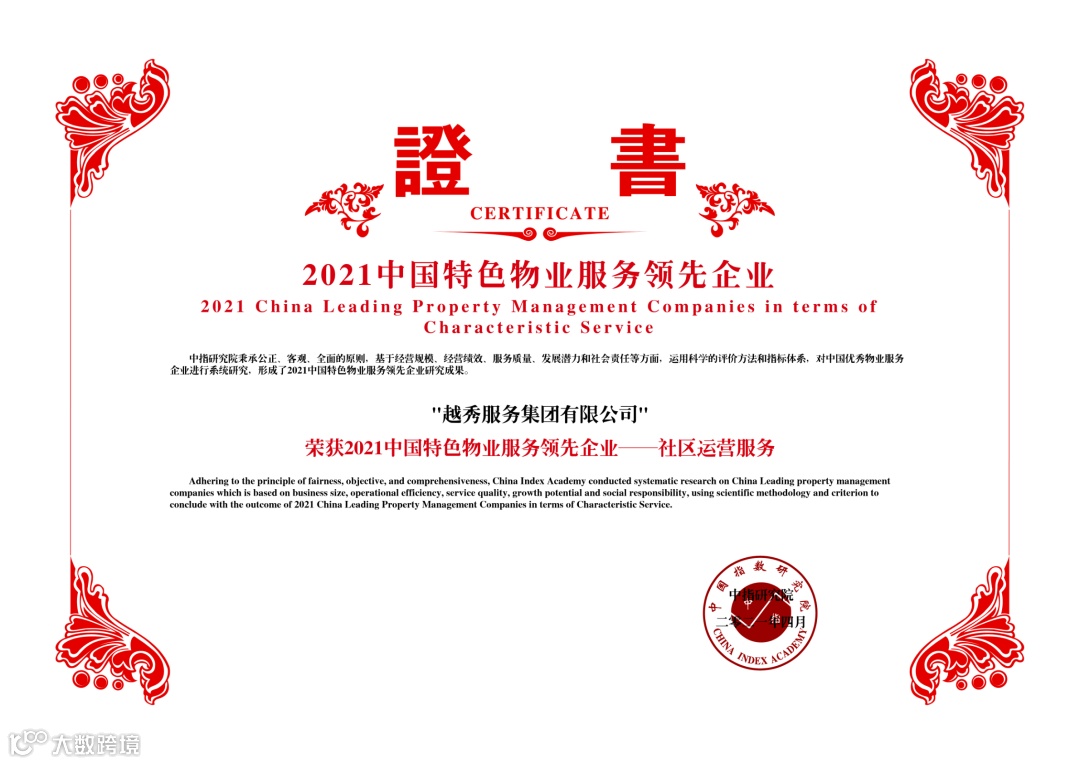 在本次研究中,越秀服务凭借自身综合实力荣膺六大奖项: