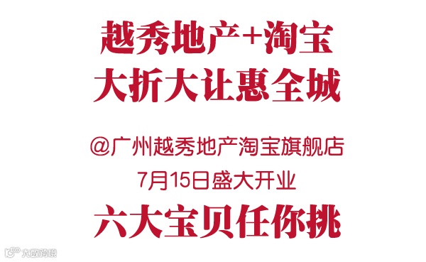 没错,越秀君就要在淘宝开旗舰店啦!各位小伙伴们,7月15日,你们就可以在“广州越秀地产”淘宝官方旗舰店上买房哦!