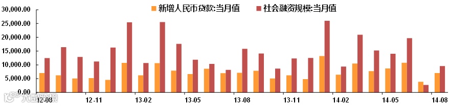 8月M2同比增长12.8%,增速较上月末降低0.7个百分点。当月社会融资规模为9574亿元,比去年同期减少6267亿元;其中,人民币贷款增加7025亿元,同比少增103亿元。主要原因在于,同业业务监管加强和金融机构风险偏好下降导致表外融资减少、同业资产收缩