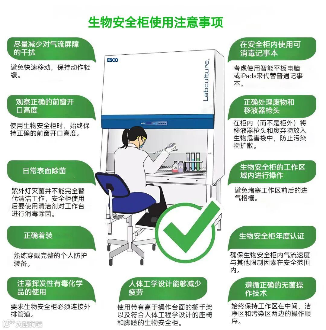 使用前检查设备标签或查看生物危害的标识,不要混淆生物安全柜与超净工作台。