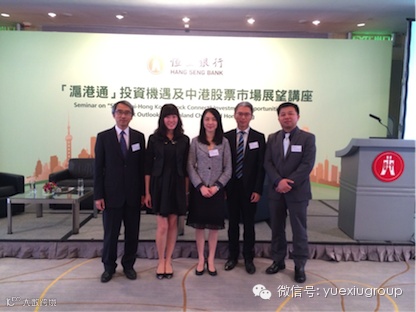 越秀集团6月3、4日,广证恒生策略研究部副首席分析师张广文先生代表出席参加恒生银行一连三场举行的『沪港通』投资机遇及中港股票市场展望讲座,与恒生银行跨境及人民币业务发展部主管颜先生、恒生投资顾问服务主管梁女士以及恒生指数董事兼总经理关先生一同担任主讲嘉宾,对『沪港通』带来的投资机遇和两岸股票市场影响进行观点分享。借助『沪港通』的东风和恒生银行的资源平台,广证恒生得以在港接连亮相并大力推广,研究品牌颇受认可,为公司下一轮的发展奠定了基础。