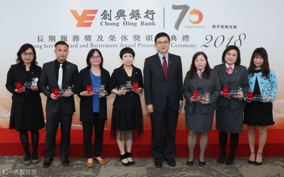 据了解,“长期服务奖”和“荣休奖”是为了庆祝创兴银行成立70周年而特别设立的,主要表彰为创兴服务10年以上和光荣退休的员工。