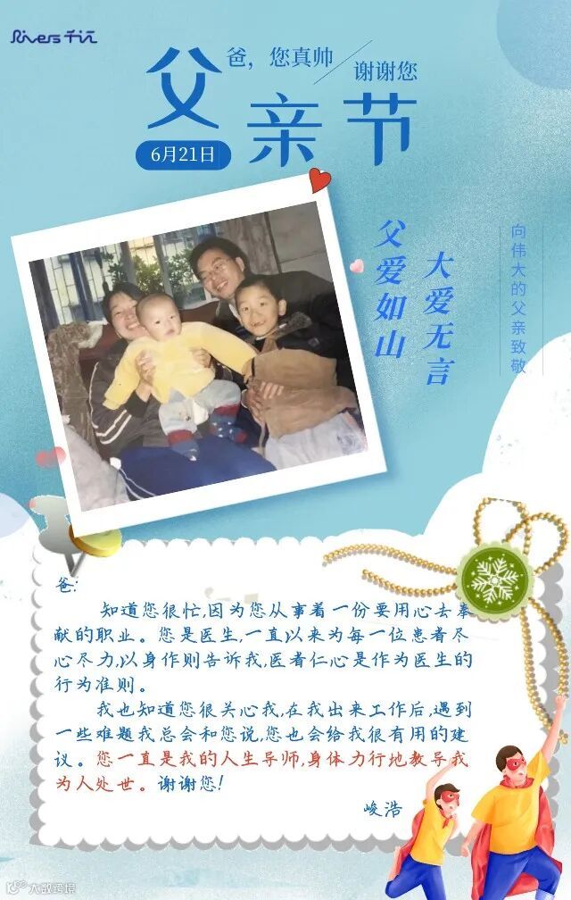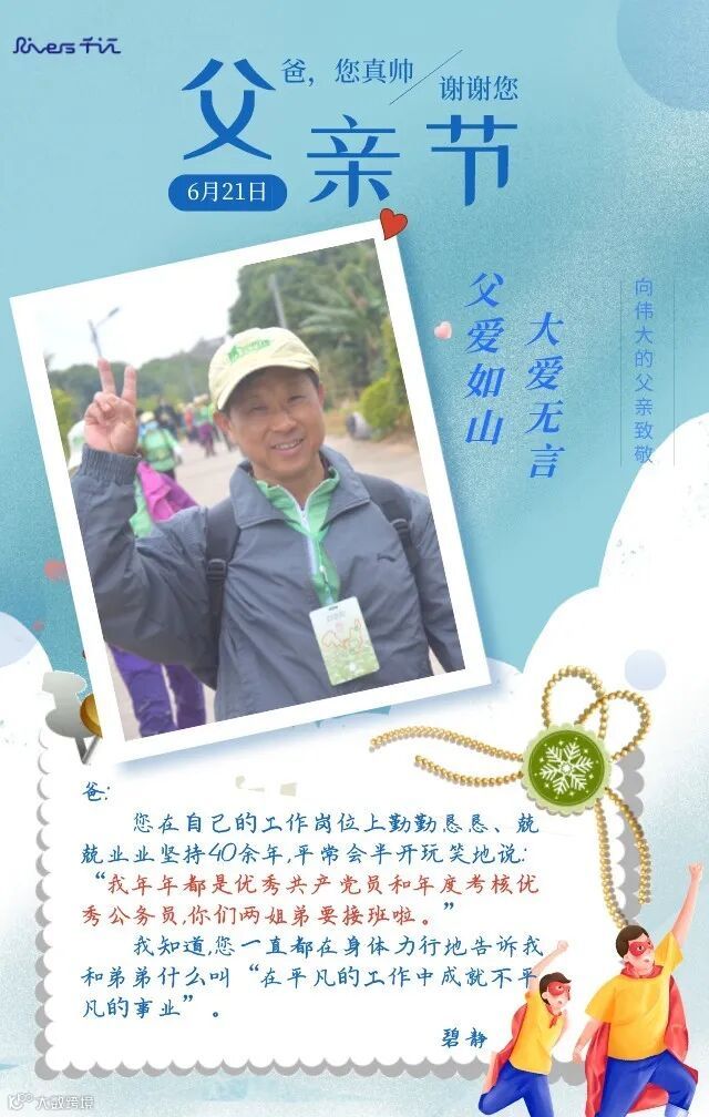 因为,我们的爸爸是任何人都替代不了。他是专属守护神、他是家庭支柱、他是明灯导航、他是超级英雄......