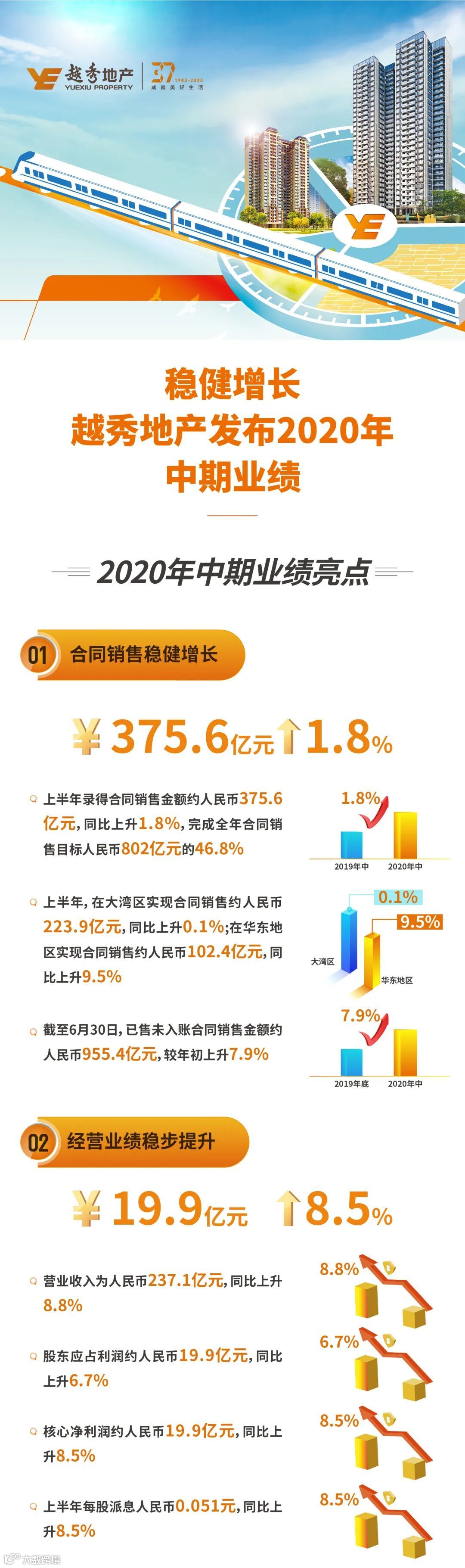 一图速览 | 稳健增长,越秀地产发布2020年中期业绩
