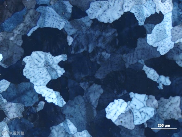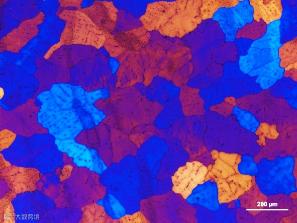 对于不透明的材料样品也可进行偏光观察,但需要反射光偏光模式,以此来分析材料的双折射性,甚至结合特殊的制样也可区分材料结晶颗粒的晶体取向。