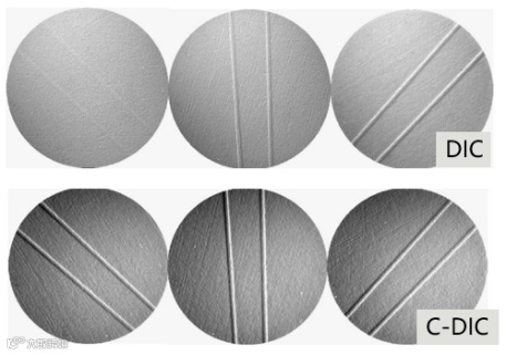 对于材料样品来讲,微分干涉(DIC)观察方式也越来越受重视和欢迎。但是对于那些有多个方向结构的材料,DIC已经满足不了观察需求,蔡司的圆微分干涉由于把线偏振光换成圆偏振光,能够一次对样品上360度取向的结构进行成像,避免了繁琐的样品旋转。