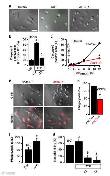 [1] Ousingsawat J, Wanitchakool P, Kmit A, et al. Anoctamin 6 mediates effects essential for innate immunity downstream of P2X7 receptors in macrophages. Nature Communications. 2015;6:6245.