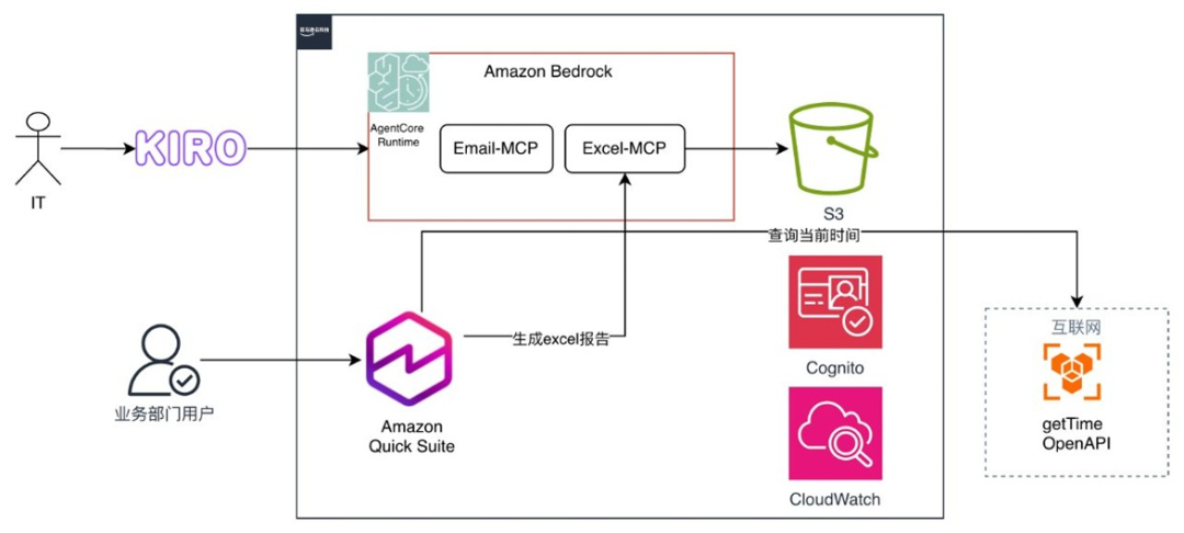 基于客户实际情况,选择Kiro+Amazon Bedrock AgentCore+Amazon Quick Suite的Serverless架构方案: