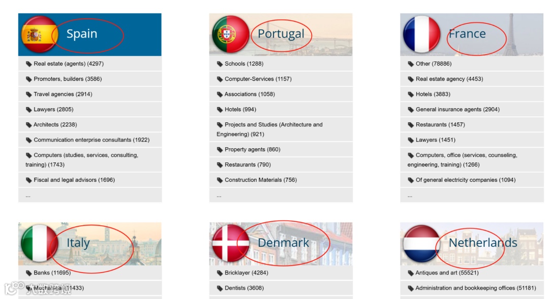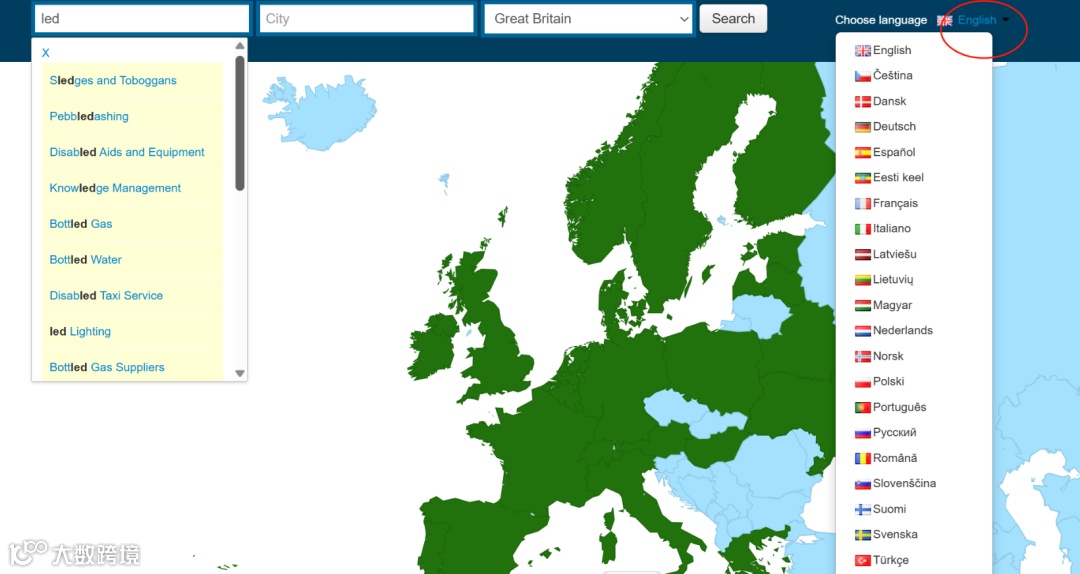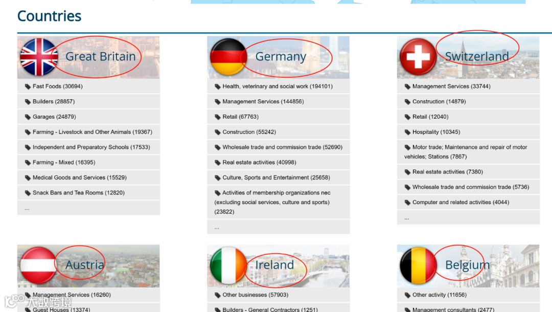 首页清晰展示23个欧洲国家的行业分类与企业数量分布,用户可快速定位目标市场。支持20余种语言界面切换,降低语言障碍,提升操作效率。