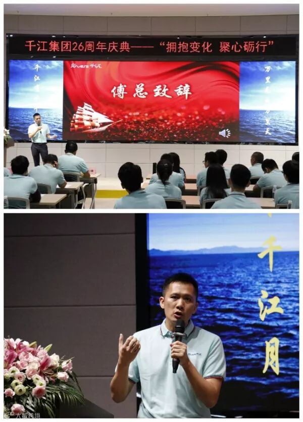 26岁,在这段充满活力与激情的年华里,离不开千江集团的领航人:刘小锋董事长。在刘董的上台致辞中,首先跟我们分享了在岁月的变迁中,我们要勇于改变。