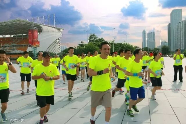 2015年,广州担保改制两周年庆6公里健康跑,广州市金融局李贵远副巡视员、越秀金控王恕慧总经理领跑。