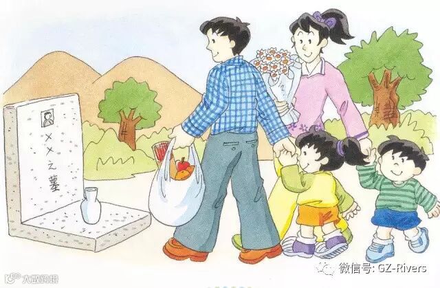 和家人一起备上清酒,洒在故人面前