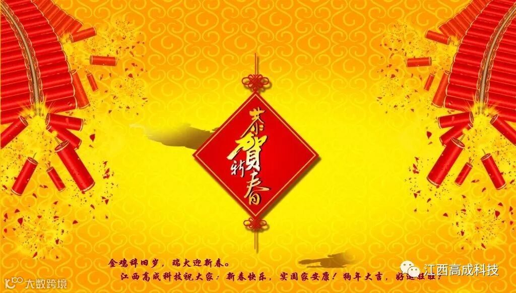 金鸡辞旧岁,瑞犬迎新春,江西高成科技发展有限公司提前给新老客户拜年啦!祝大家在新的一年里:新春快乐,阖家安康;狗年大吉,好运旺旺!