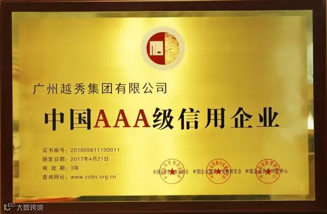 近日,由中国合作贸易企业协会、中国企业改革与发展研究会联合主办的“2017中国企业信用发展论坛暨第八届诚信公益盛典”在京隆重召开,广州越秀集团有限公司获得了2016年度“中国企业AAA信用企业”认证,并位列“中国企业信用500强”和“中国服务业企业信用100强”。