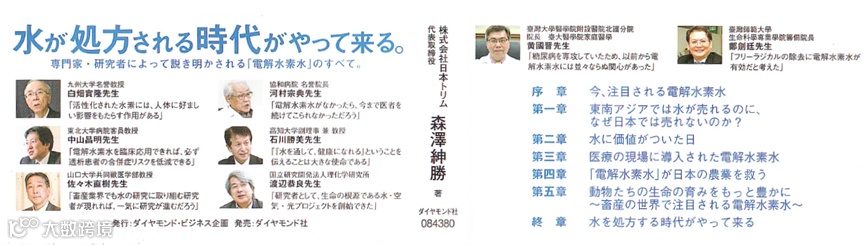 在大家的关爱下,我们公司终于在2004年成功登陆东京证券交易所一部,并成长为一家年营收规模超过152亿日元、整水器市场占有率第一的上市公司。即便如此,在这36年来以功能水为主业的企业经营活动中,我深刻体会到的一点,就是医学界和医疗行业虽然对水的卫生安全有一定的认识,但对于水的功能的关注,依旧远远不够。