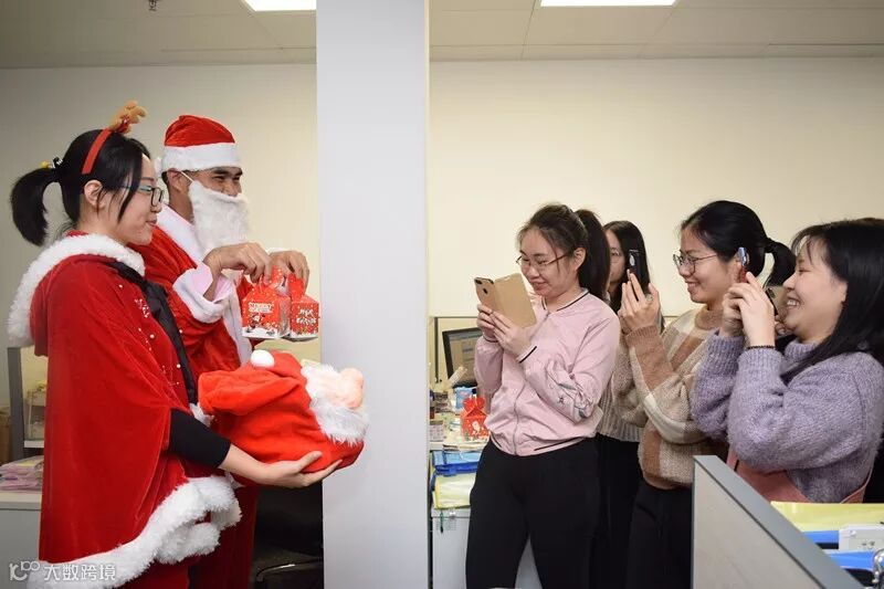 下午,自带光环的圣诞老人和圣诞女神终于来到我们身边,派发平安果和圣诞糖果。整个办公室瞬间被这股红彤彤的暖流点燃,纷纷和他们合照,他们现场俘获了多少迷弟迷妹,看合影就一目了然啦!