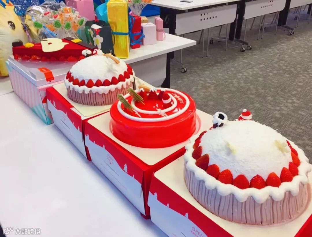 现场摆放着圣诞feel的生日蛋糕,吸睛指数up up,试问作为吃货的你们如何抗拒?