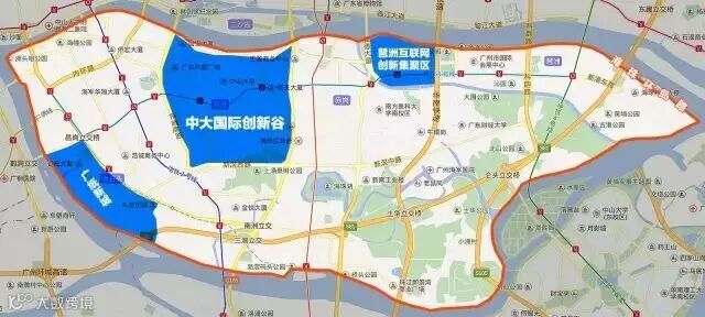 正如上图所标注,海珠硅谷,是由中大国际创新谷、琶洲互联网创新集聚区、广纸新城三个片区组成,而环岛路,则将三者高速串联。