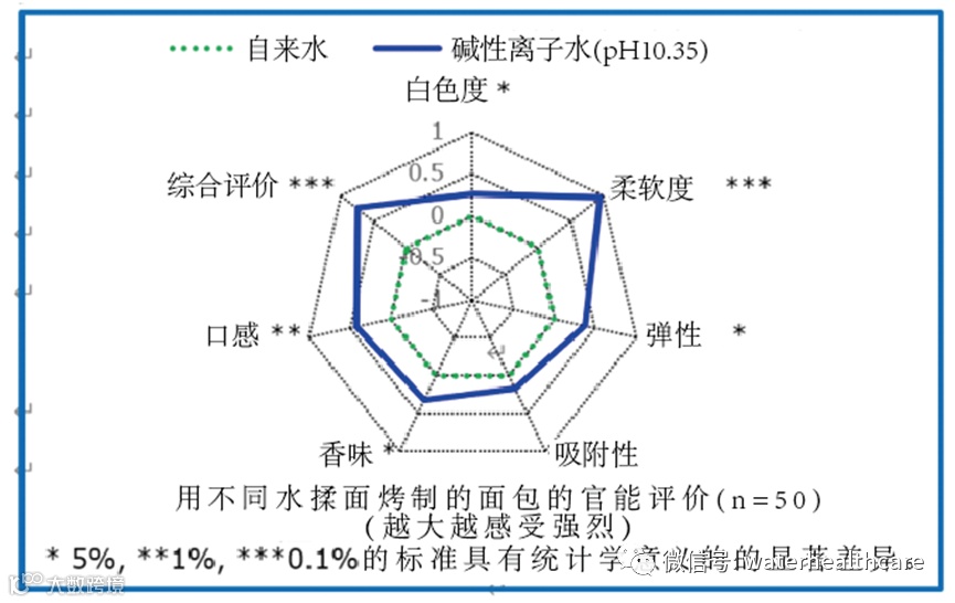 比起自来水,碱性离子水制作面包更酥软,综合评价得分更高。