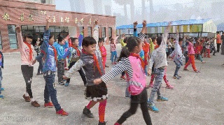 抓紧时间和小伙伴在橡皮筋上来回跳跃,