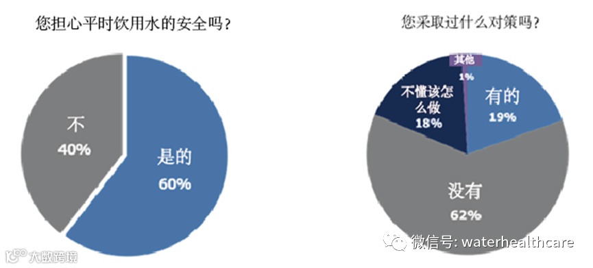 ・60%的人担心平时饮用水的安全,但80%的人回答说没有采取任何措施。