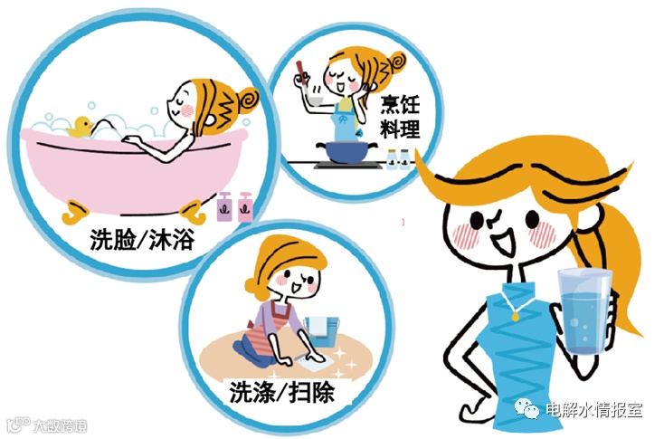 整水器制备出来的弱酸性水可用于洗脸、洗澡、洗涤、烹饪料理等方面。
